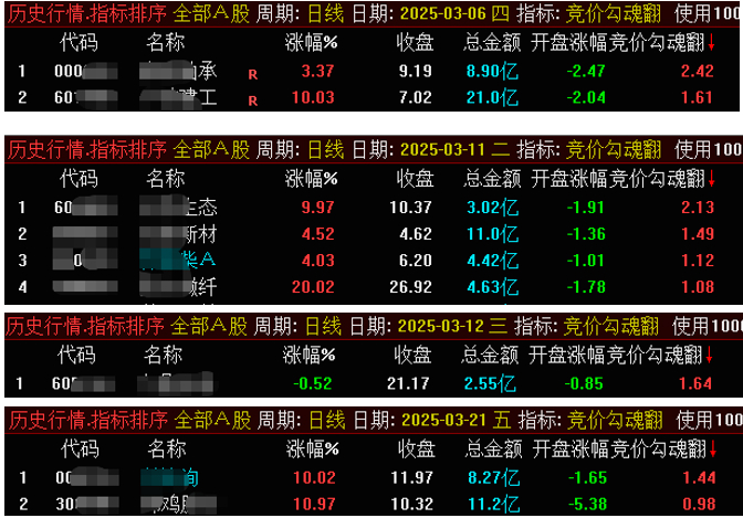 竞价勾魂翻的指标套装包含副图指标、排序指标和选股指标,本思路为短线低吸思路;