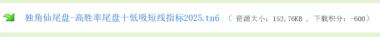通达信指标【独角仙】尾盘十分钟套装-主图-副图-选古指标,支持手机电脑使用。在股市收盘的前十分钟,用独角仙预警或者选古使用,别人网站卖600的指标。 升级VIP 所有资源免费下载价格30 学分终身VIP免费升级终身VIP立即购买点击购买支付成功后,就会弹出下载连接 客服QQ:1362630998资源大小:52.6 KB更新时间::2025-12-19观看方式::百度网盘下载看路径:橙子哥02/分享/591-【独角仙】尾盘十分钟状态:已上传到百度网盘 原文链接:https://haitao.nincuo.com/caijinglicai/44450.html,转载请注明出处。 0 0 指标