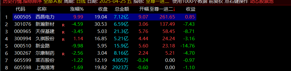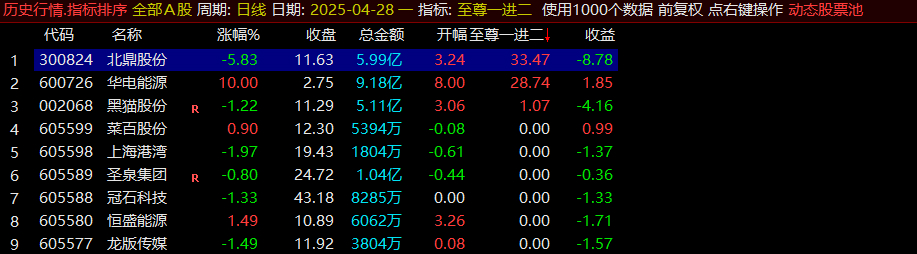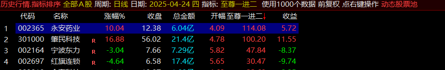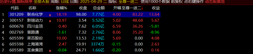 3、9点25分后点击.401进行A股排序,排序第一的并不代表百分百会涨停,这时可以对其他信号给予关注,毕竟每次信号不会特别多,甚至几天都不会有。
