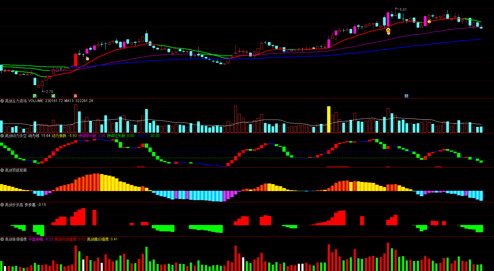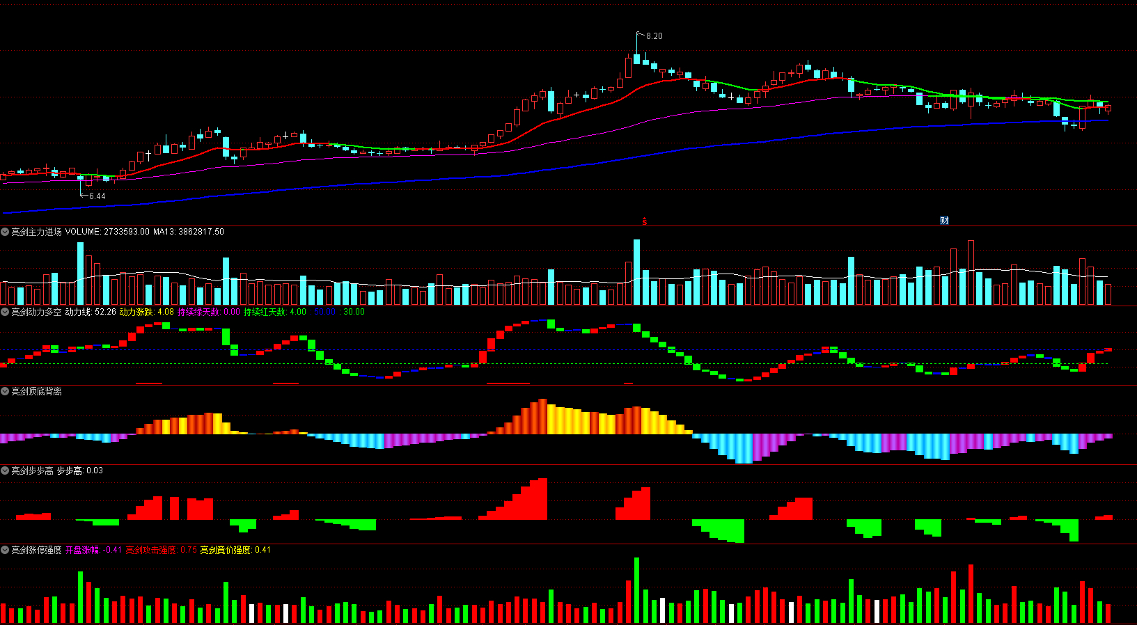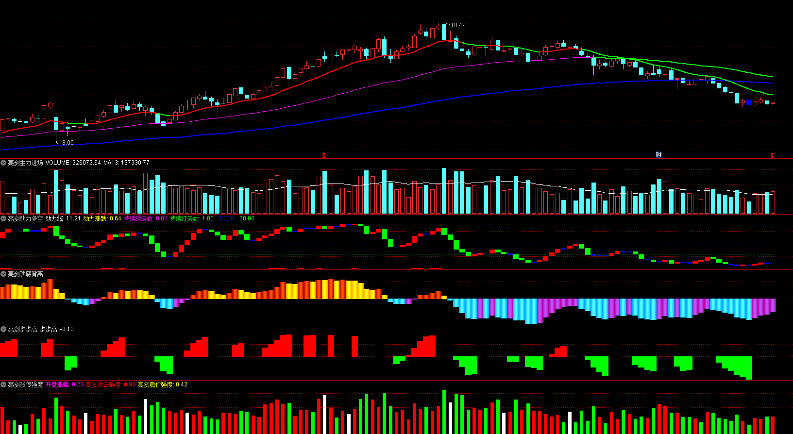 均价、当日震幅、当日张跌幅、上影线、下影线、短线盈亏、龙头线、慢牛线、生命