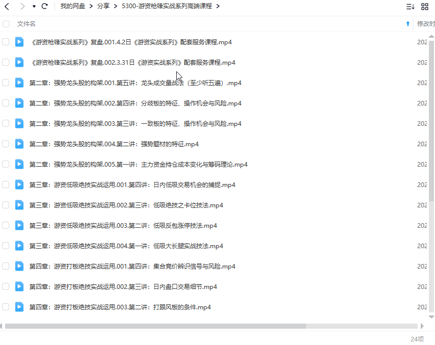 游资枪锋实战系列高端课程,游资实战交易系统,打板绝招低吸绝技风控系统资源简介:
