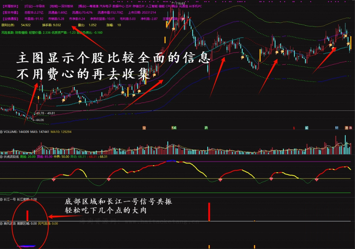 长江一号是强化底部指标,与乘风破浪配合使用,相辅相成,共振出击。单独使用要结合伏虎波段线低位使用。