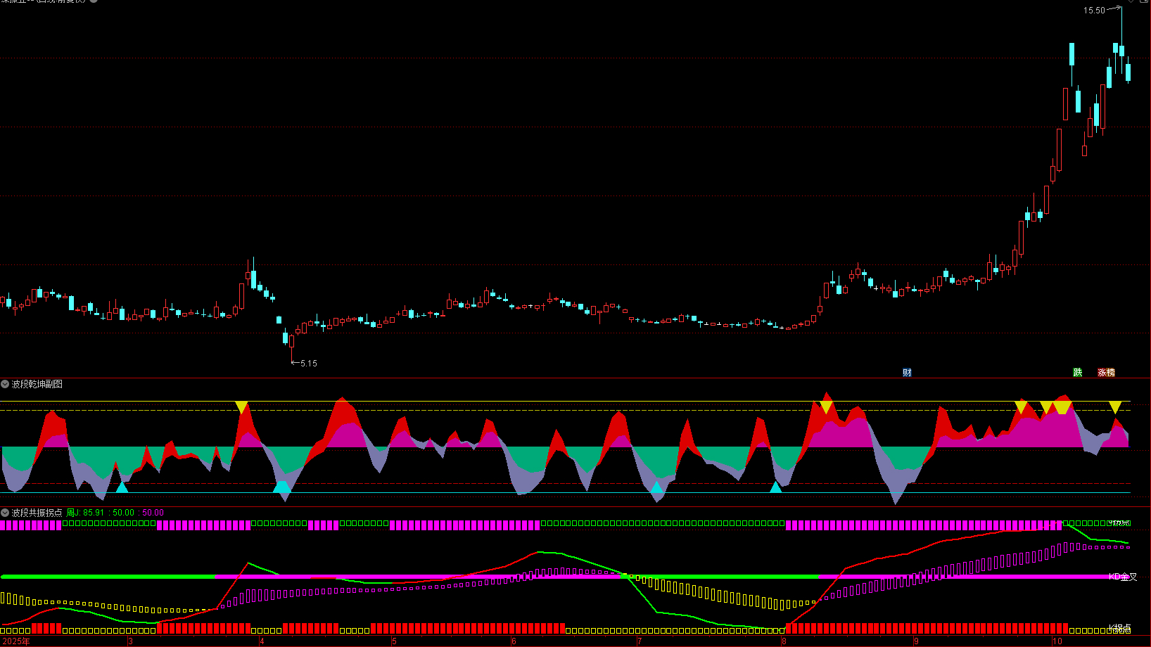 操作策略很简单:当快线上穿慢线时考虑买入,下穿时考虑卖出,同时参考辅助线的转向来增加判断准确性。指标还特别关注较长时间周期的走势来过滤短期噪音。
