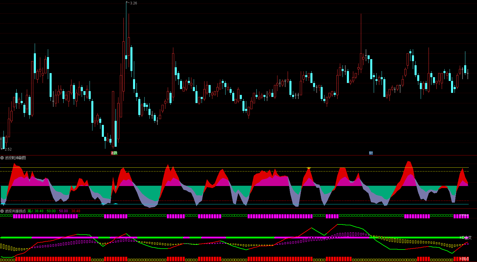 指标通过计算价格波动来识别市场买卖时机。它主要分析三条曲线的关系:当快线从下向上穿过慢线时产生买入信号,反之是卖出信号;同时关注另一条辅助线的拐点变化来确认趋势强度。