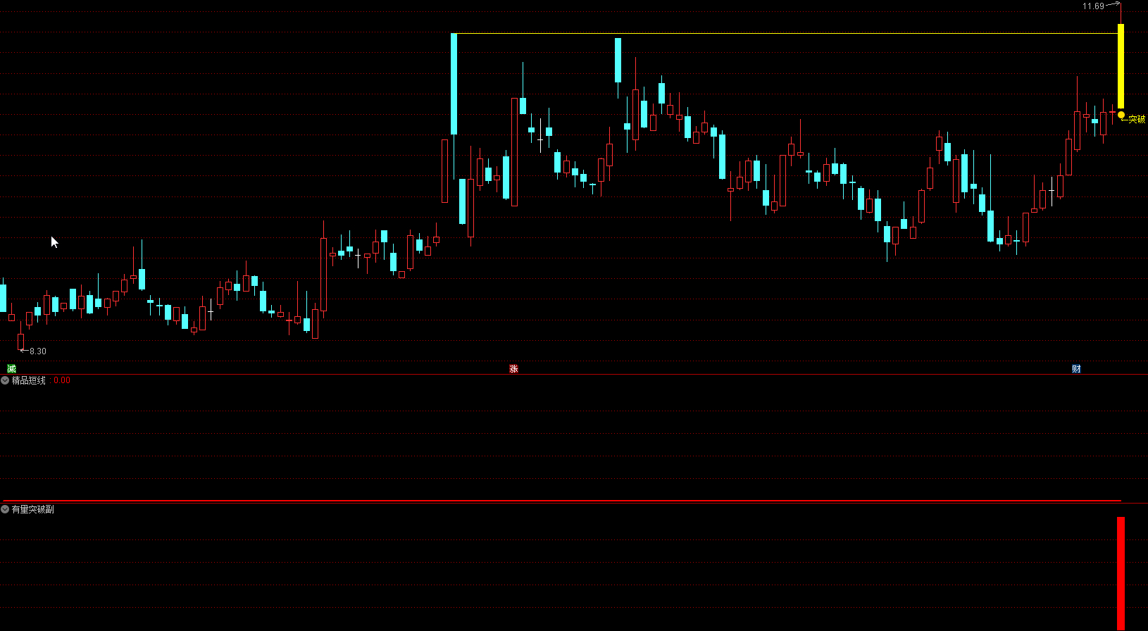 识别个股在出现一根放量长阴线后,价格持续在阴线高点下方盘整,随后以阳线突破阴线高点的买入信号。策略过滤ST股和特定板块,确保标的流动性。