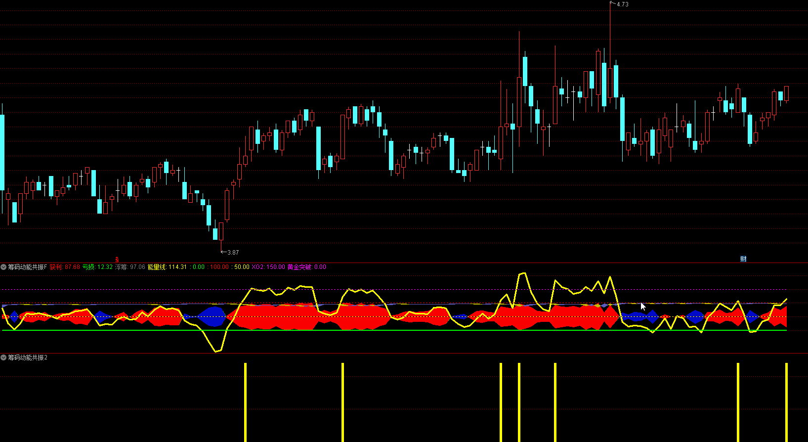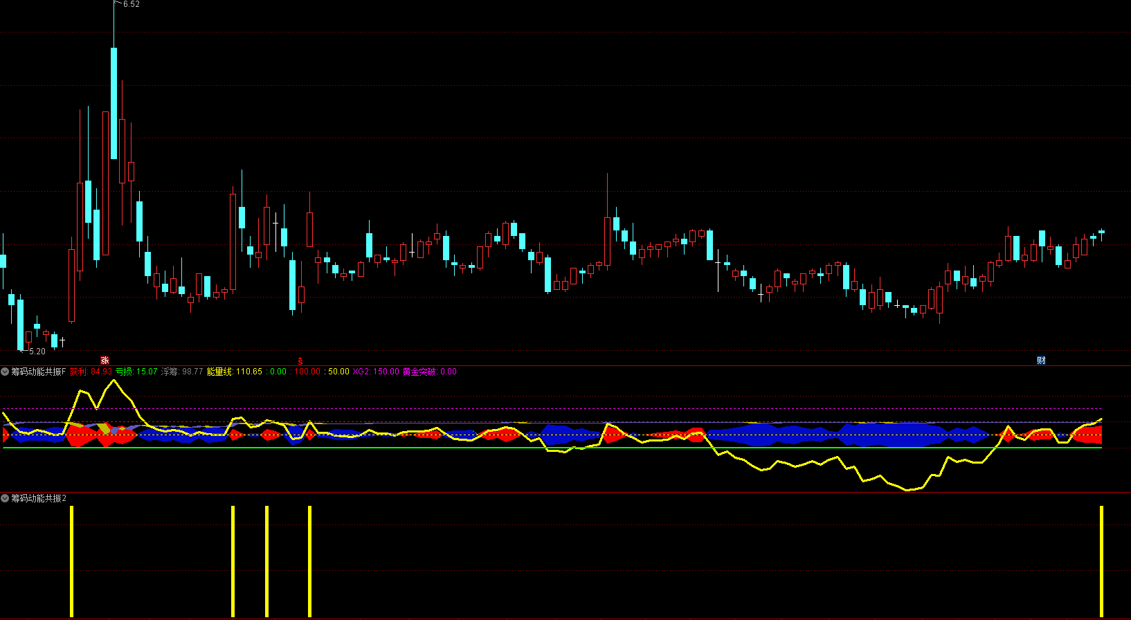 当能量线向上突破特定高位时视为黄金突破信号