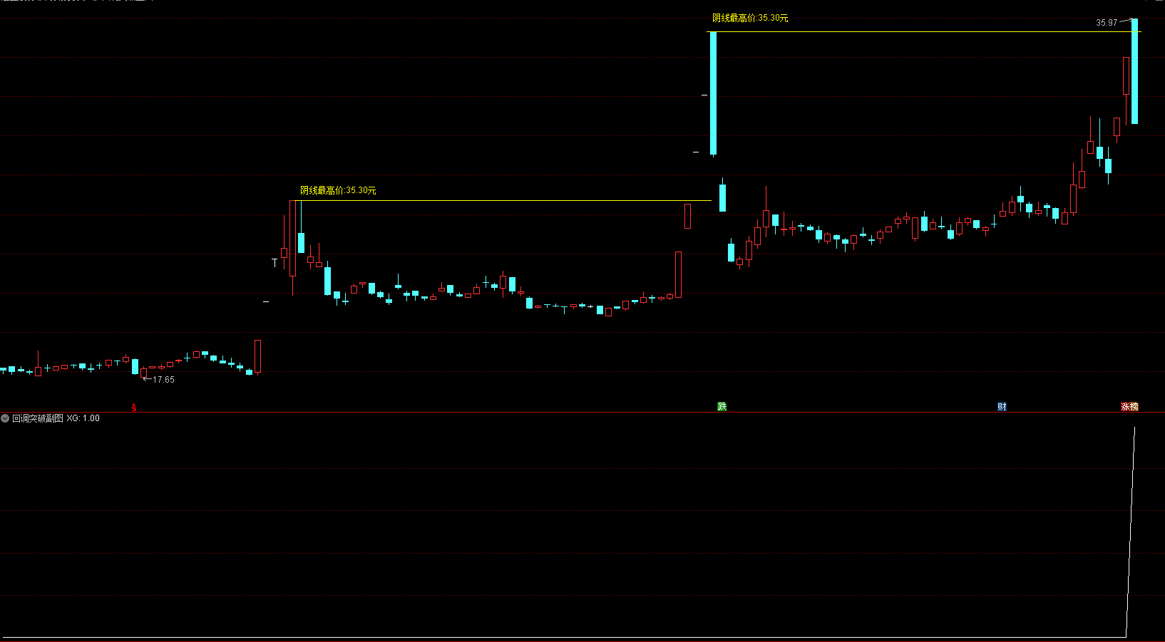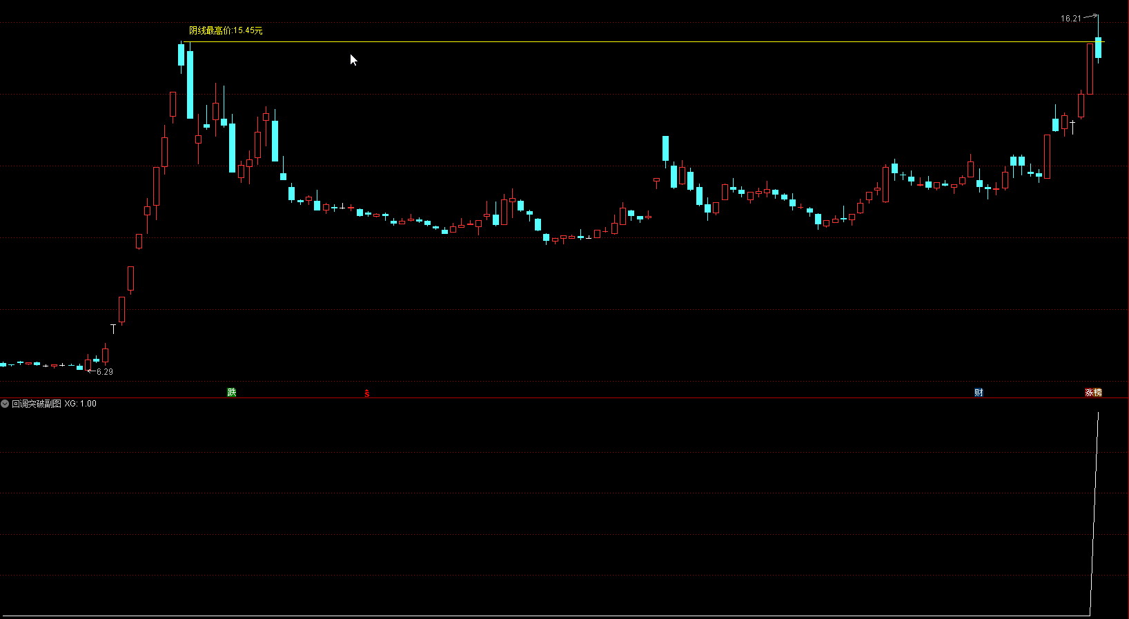 指标主要用于识别股价在经历一段调整后,重新突破前期高点的关键信号。其核心功能是捕捉“假突破”后的反转机会,即当股价短暂突破前高后回落,随后再次放量突破该压力位时,发出买入信号。