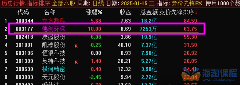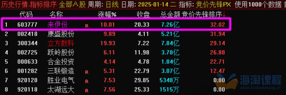 竞价先锋排序选股指标,集合竞价常常是一天最重要的时刻,能看出一只股票的人气,和主力对于这只股票的态度。本指标通过对集合竞价的各种数据,做一个排序选股,然后通过排序,精选出当天非常有可能涨停的个股。为了更准确的选出强势股,避免踩雷,指标使用了特殊函数,通达信手机版不支持,只能电脑使用,电脑上可以排序,也可以选股。