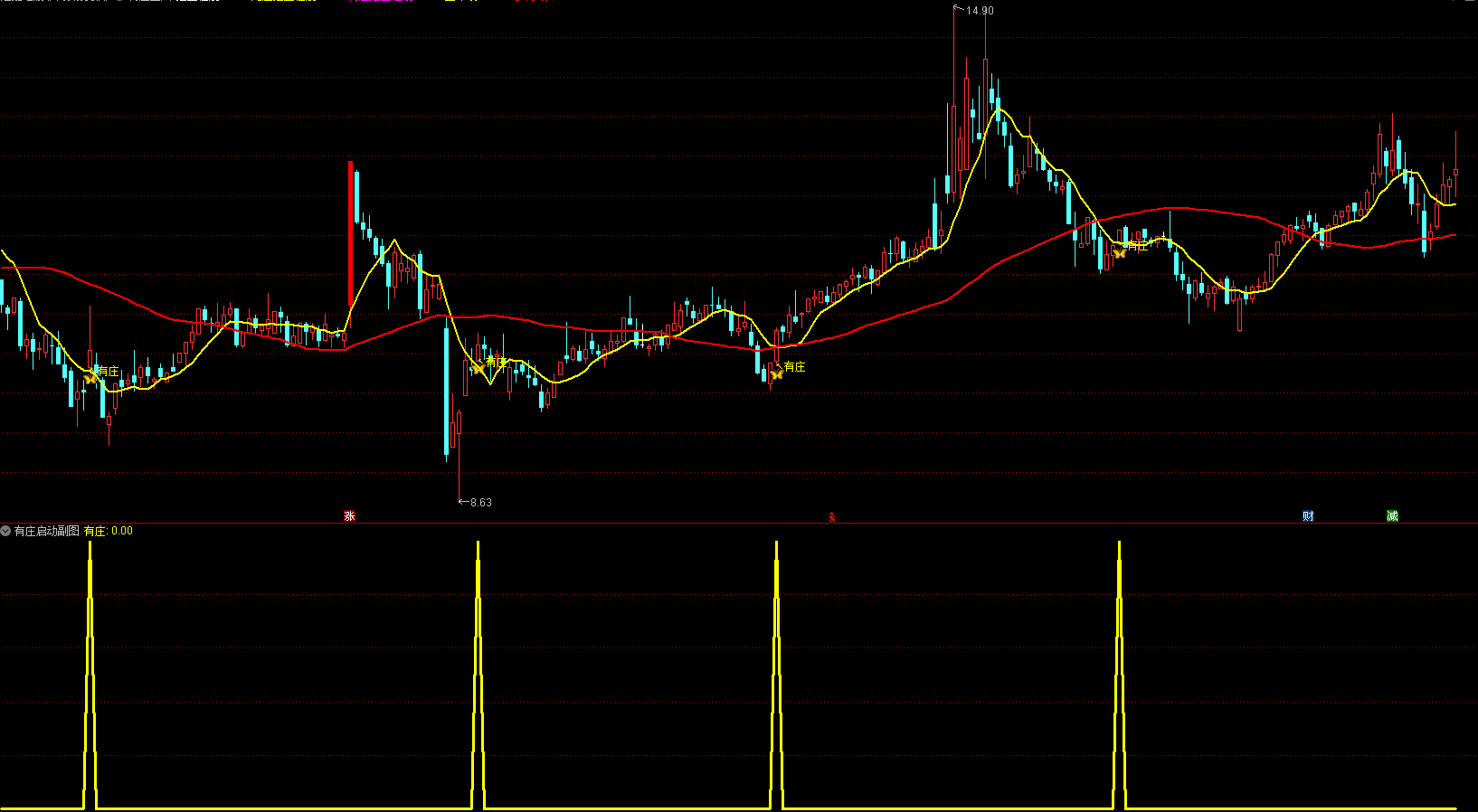指标专门识别有主力控盘的强势股,通过计算加权价格、控盘程度和趋势变化来捕捉起涨点和顶部信号。当股价处于低位、主力开始介入且趋势转强时提示买入;当股价加速上涨、主力减仓且趋势转弱时提示卖出。