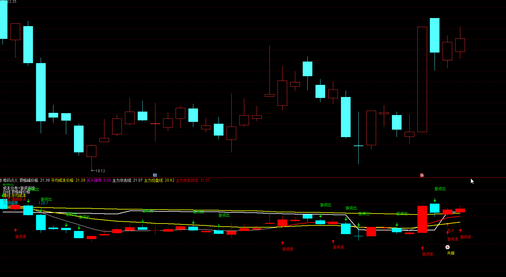 这是一个非常完整的三合一成本分布系统与游资监控模型,结合了成本分布、主力攻击系统和游资资金流向分析。