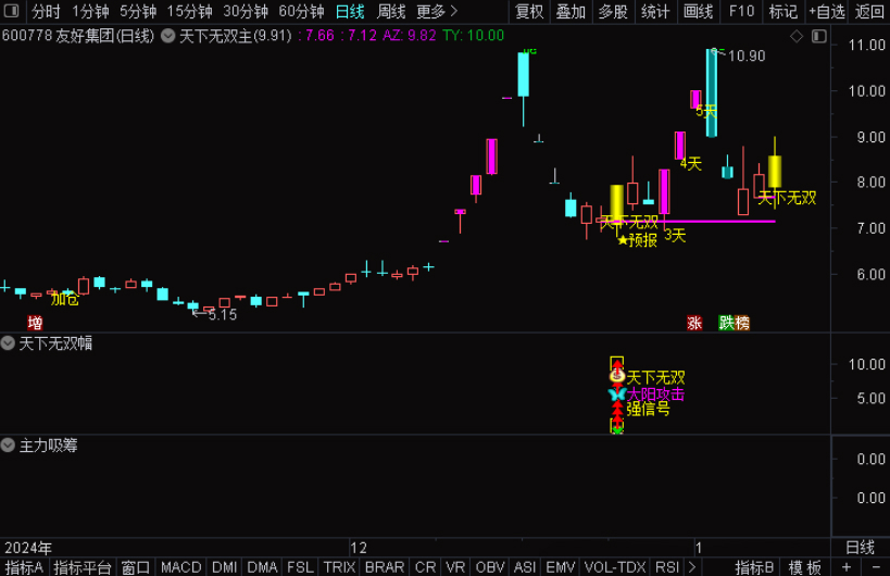 某论坛之前的一款金钻指标,名字是预报涨停,最近被改了名字重新发了出来,搭配了一个主力吸筹的副图,也是挺适合当前行情的。指标的设计逻辑非常好,感谢原作者。