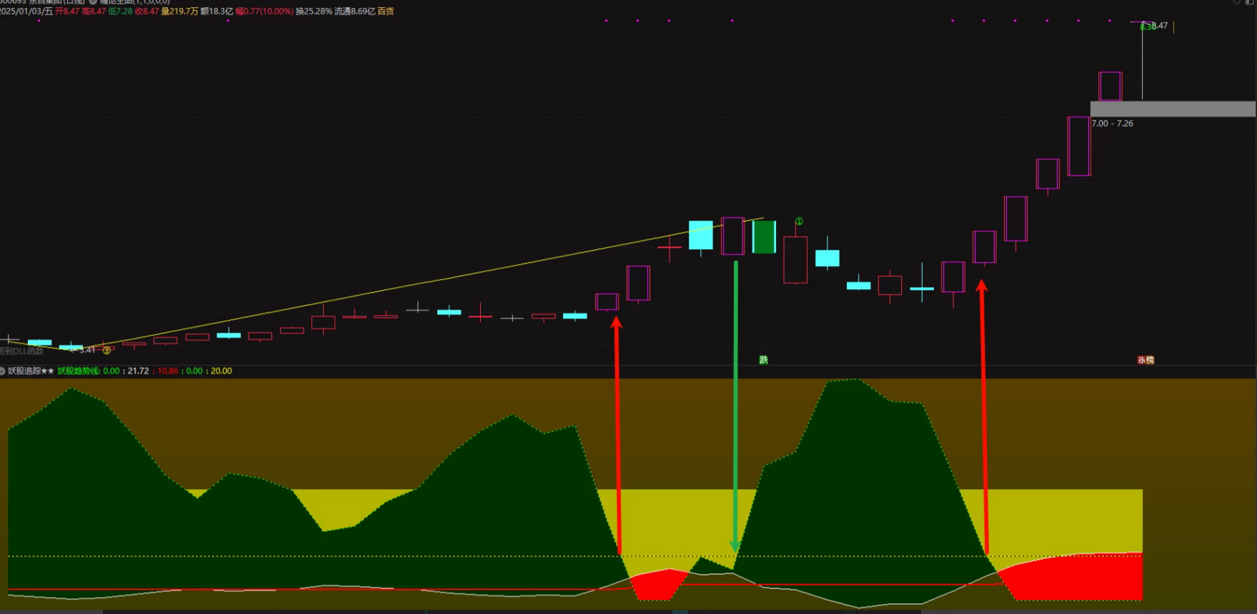 当指标底部悄然出现红色方块时,便是我们值得留意的时刻。