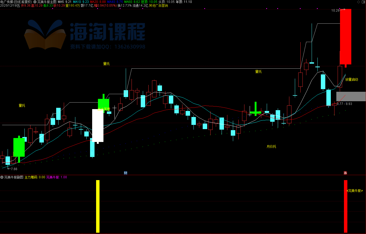 本指标整合「强势量价突破」与「低位蓄势启动」双维度逻辑,既保留经典技术形态(量托、多方炮、出水芙蓉、老鸭头等)的可视化标注,又新增 “精准牛股启动” 专属图标信号,通过多条件交叉验证,辅助投资者识别兼具 “强势基因 + 稳健启动特征” 的牛股,适用于 A 股短线 / 波段交易分析。