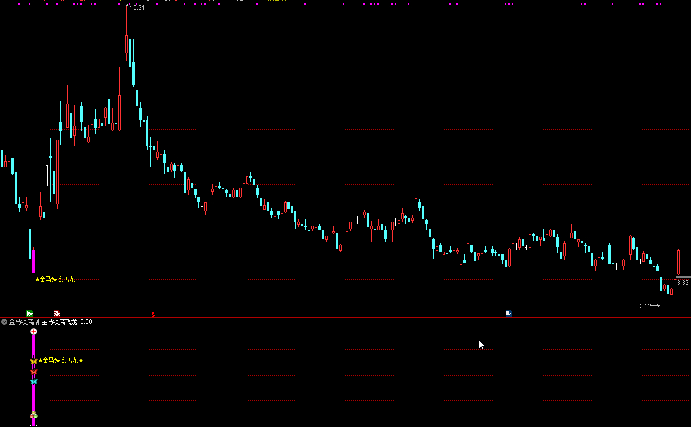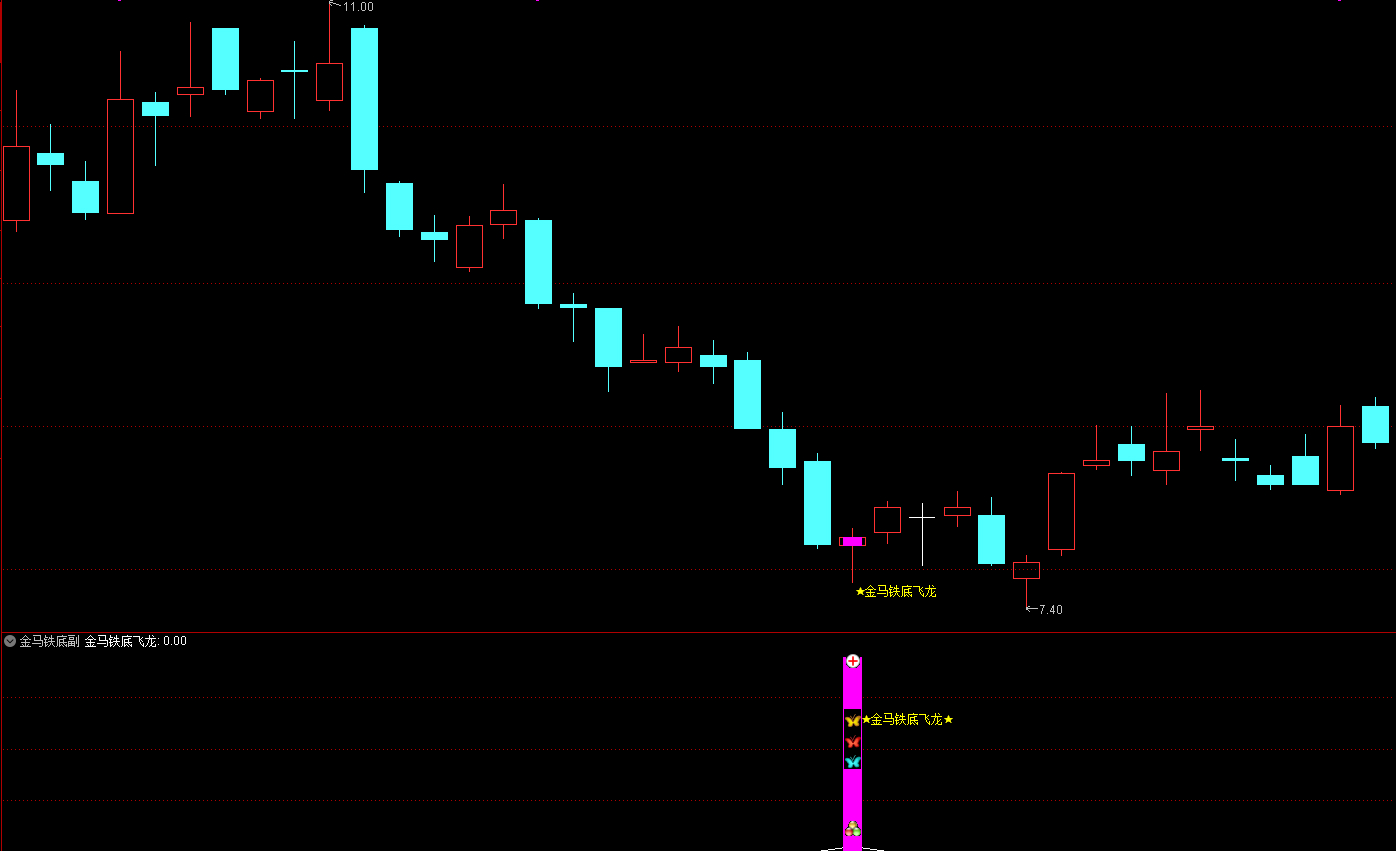 金马铁底飞龙指标是一款专为捕捉股价深度回调后的强势反弹信号而设计的量化指标,底部成功率很高,信号较少且比较集中,往往信号出现时就是大底部。