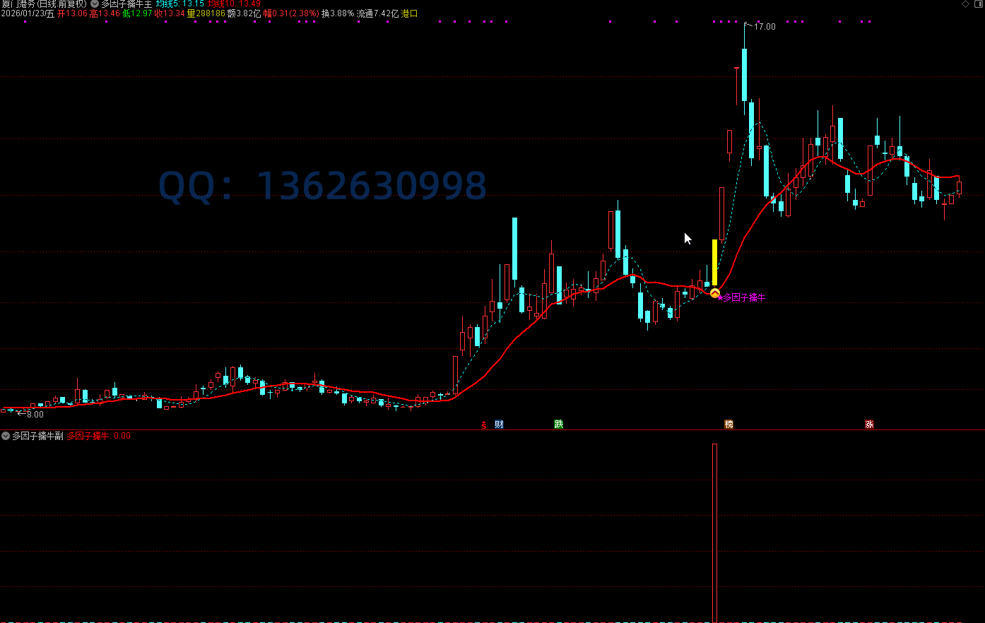 多因子擒牛指标整合专为普通散户打造的牛股捕手,整合趋势、量能、资金、情绪、均线等五大因子,只做主力进场与趋势确认的确定性行情,信号数量不多。