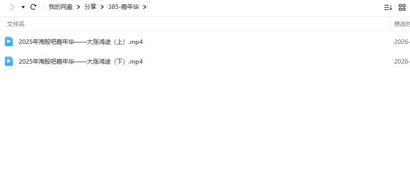 2025年淘股吧嘉年华——大涨鸿途2026.01.10资源简介: 2025年淘股吧嘉年华8小时视频全程 课程目录: 2025年淘股吧嘉年华——大涨鸿途(上).mp4 2025年淘股吧嘉年华——大涨鸿途(下).mp4 升级VIP 所有资源免费下载价格9.9 学分终身VIP免费升级终身VIP立即购买点击购买支付成功后,就会弹出下载连接 客服QQ:1362630998资源大小:3.67 GB更新时间::2026-02-02观看方式::百度网盘下载看路径:haitao20119/分享/385-嘉年华状态:已上传到百度网盘 原文链接:https://haitao.nincuo.com/caijinglicai/49908.html,转载请注明出处。 0 0