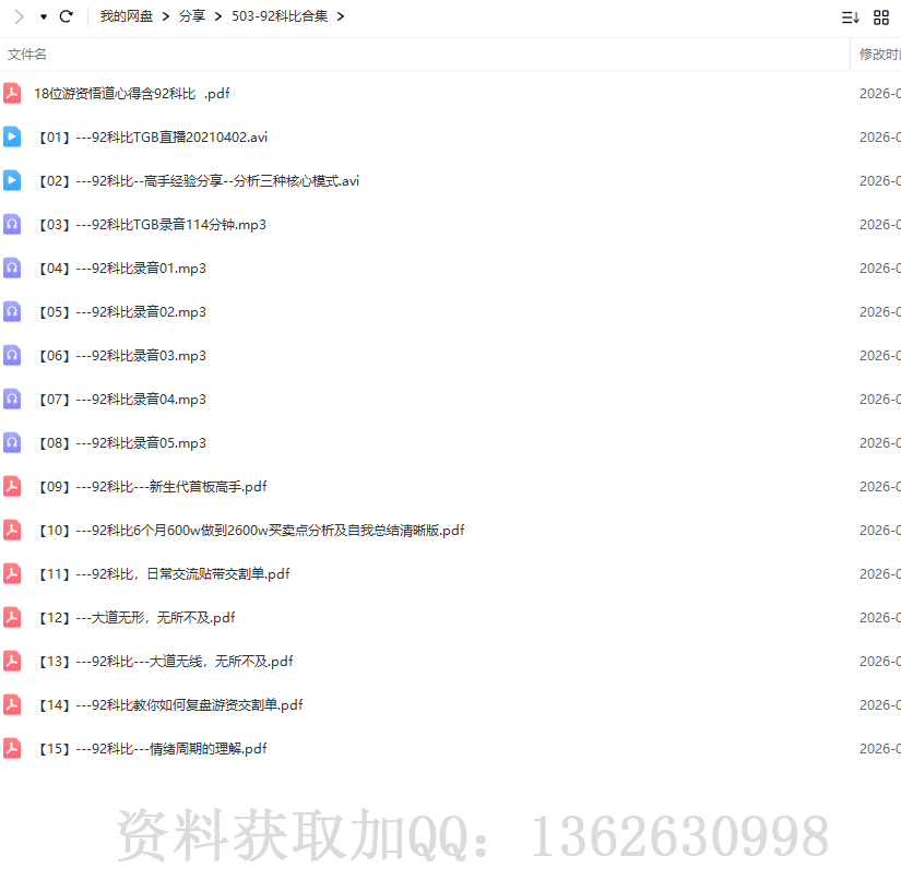 新生代首板高手92科比炒股模式买卖点分析悟道心法干货合集资源简介: