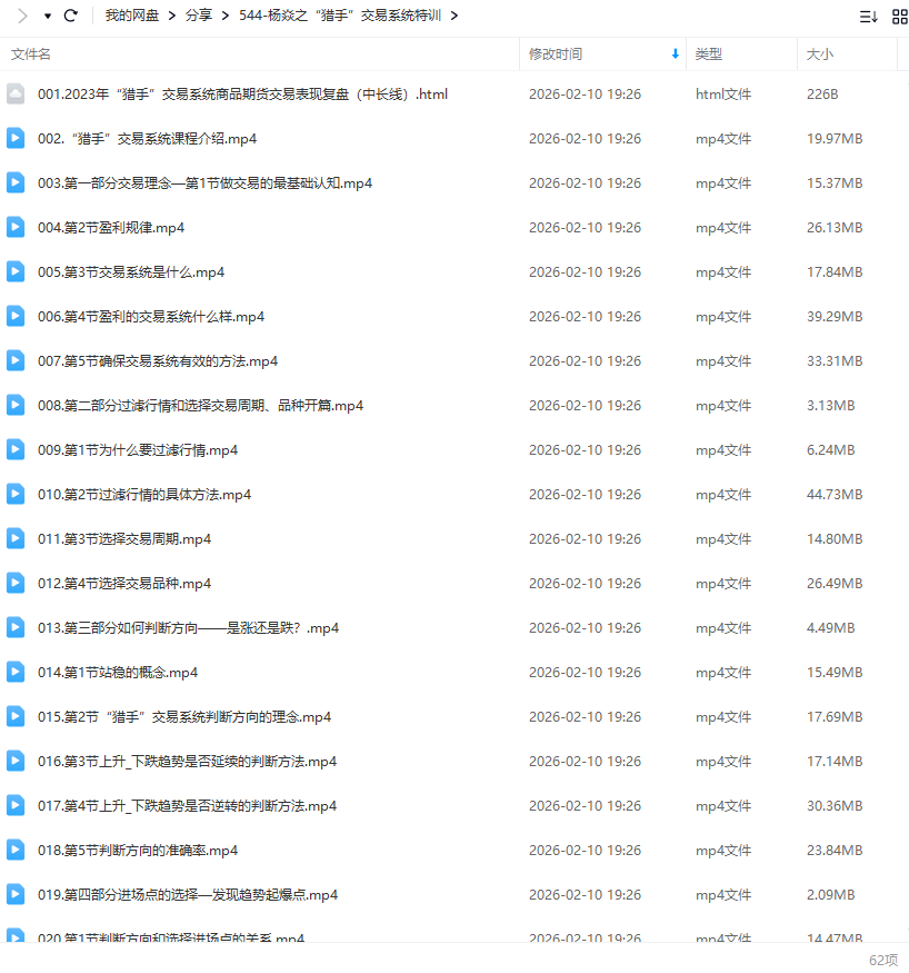 杨焱之“猎手”交易系统特训,期货交易课程资源简介:
