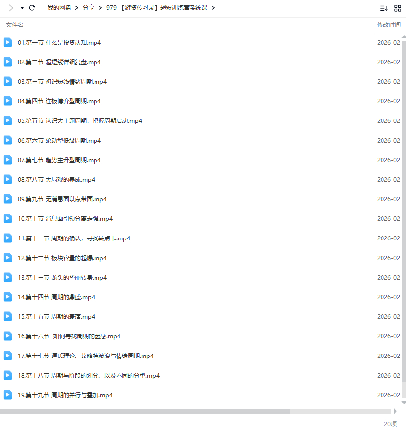 【游资传习录】超短训练营系统课,情绪周期课程资源简介: