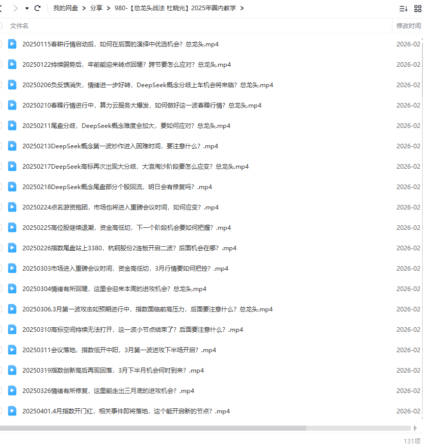 【总龙头战法】杜光晓2025年圈内教学资源简介: