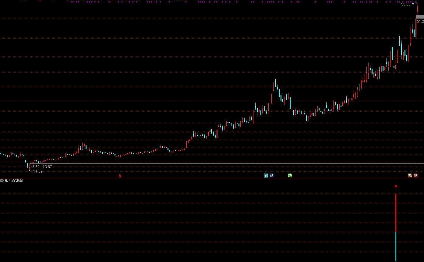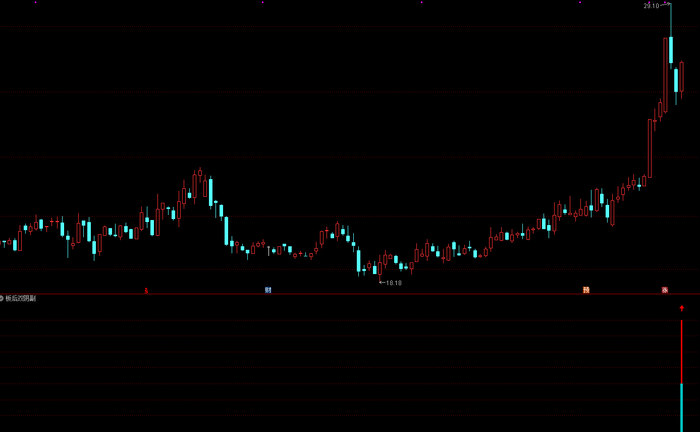 这里说一下板后双阴,板后双阴是最常见的一种洗盘方式,如果板后出现缩量收阴,后边阳线能再次反包前边一根、或两根阴线,且位置、形态走势都不错,则可关注一下,有的后边走势可期。
