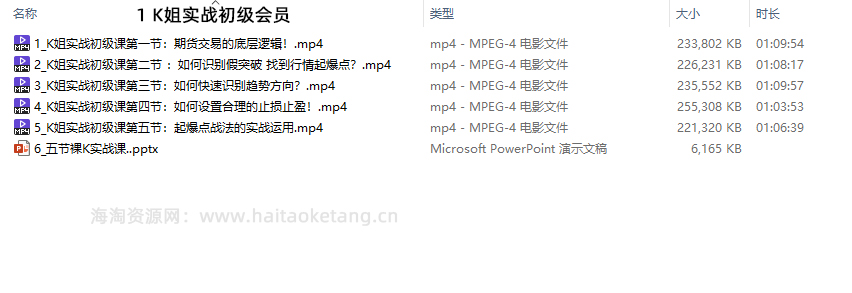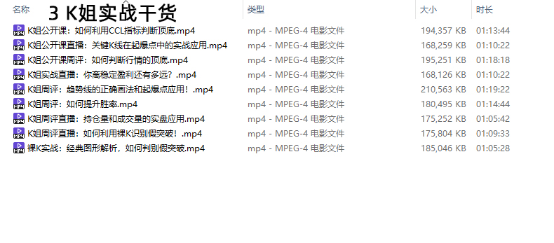 K姐三套课,K姐期货交易系统,裸K实战初级高级资源简介: