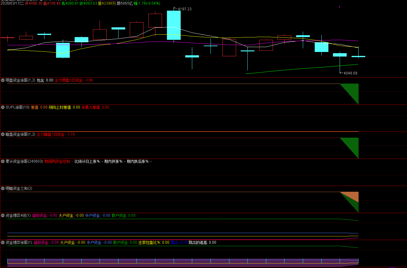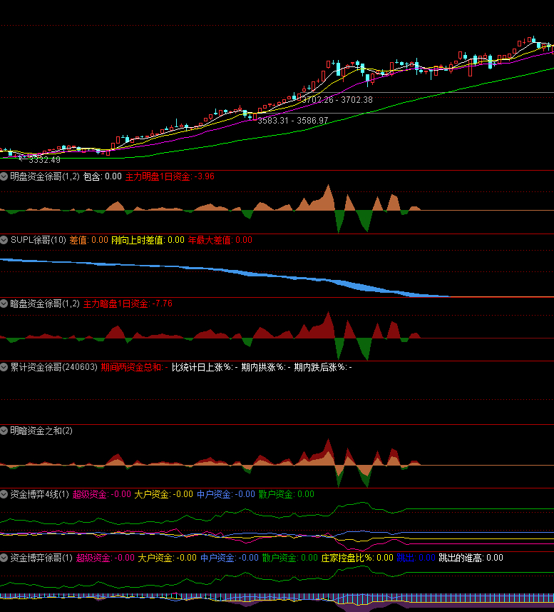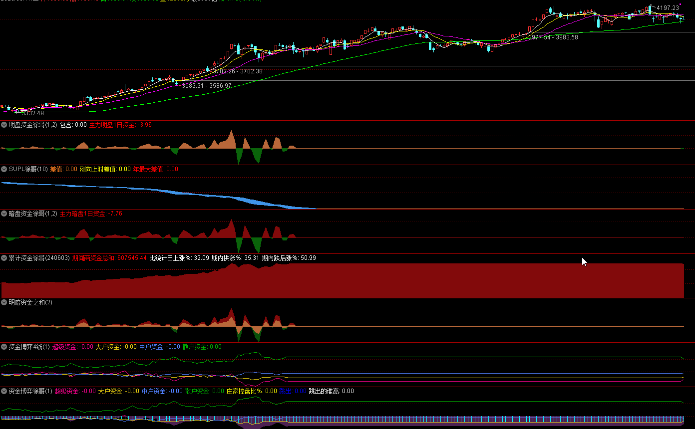 明盘资金,暗盘资金,累计资金,资金博弈,资金博弈4线 等等七个资金系列公式