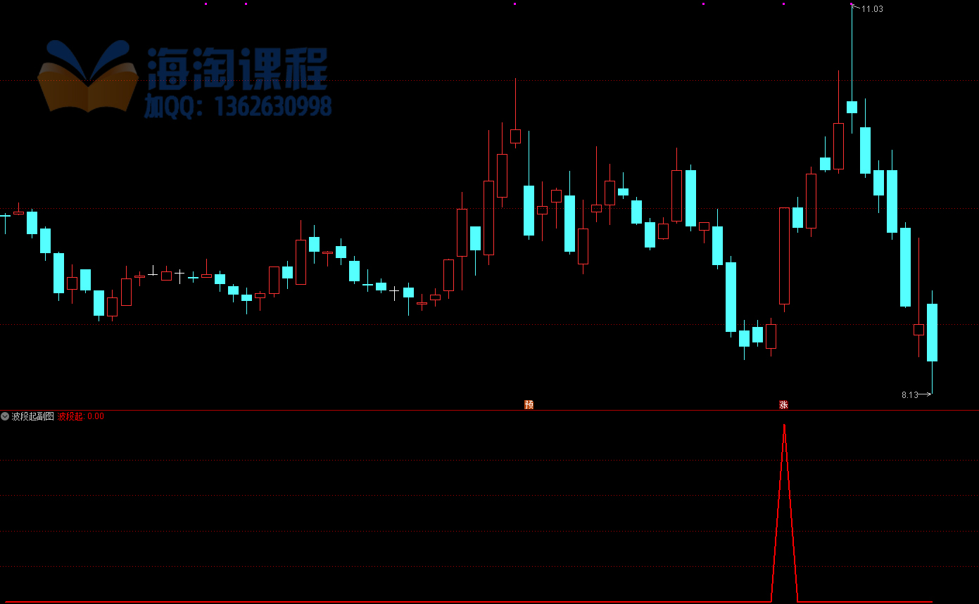 指标主要用于捕捉低价股的波段启动点。核心逻辑是结合趋势、动量与价格突破:首先要求股价处于60日均线之上且均线向上,确立多头趋势;其次利用类似方向指数的算法,确认上涨动能强于下跌动能;同时配合短期均线金叉长期趋势线,并限定股价低于50元的主板及创业板股票;最后需满足收盘价站上60日均线且开盘价在均线下方的突破形态。