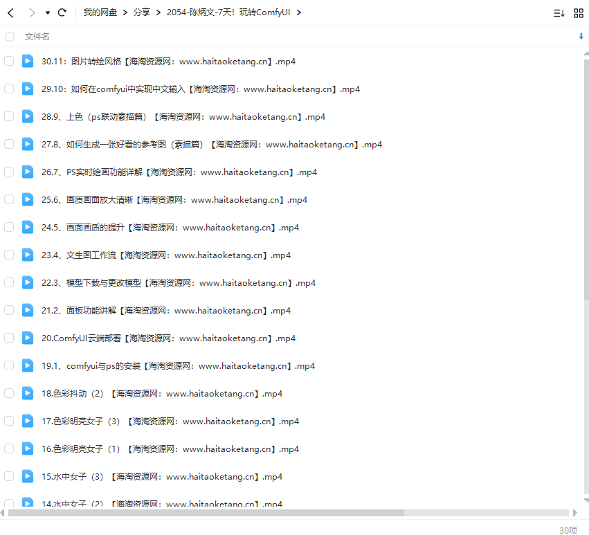 陈炳文从0基础到进阶,7天玩转ComfyUI,Comfyui工作流+AI视频生成资源简介: