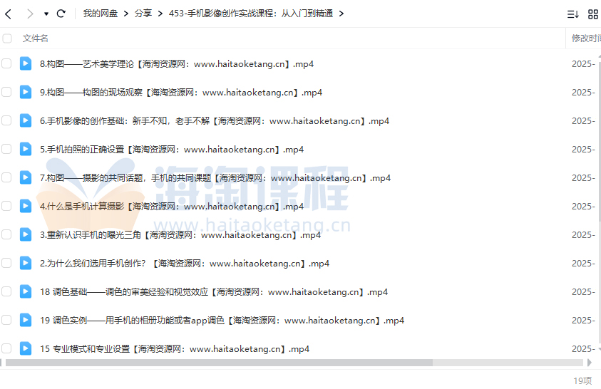 手机影像创作实战课程:从入门到精通资源简介: