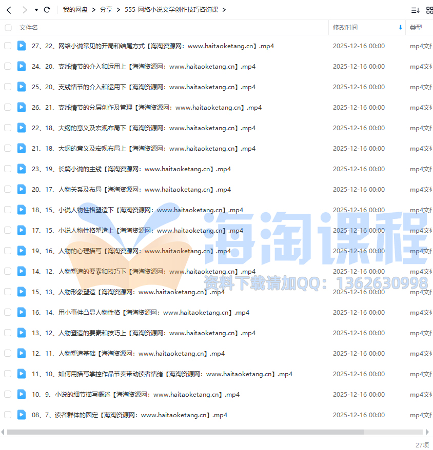 网络小说文学创作技巧咨询课,让大家从“懂行情”提升到”会写作”的高度资源简介: