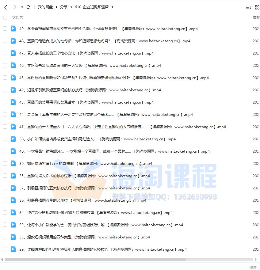 企业短视频运营+直播带货系统,从小白到百万粉丝的必修课程资源简介: