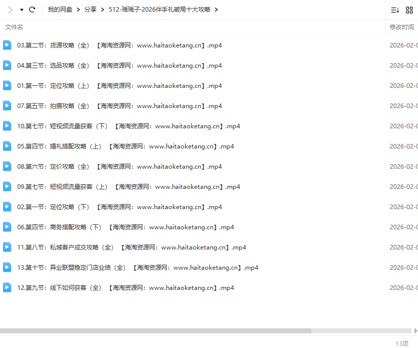 课程来自瑶瑶子的2026伴手礼破局十大攻略。课程将系统性地带你解决从零到一的核心难题:如何精准定位、找到优质货源、打造爆款选品组合。更关键的在于获客与成交:课程将深入拆解短视频引流、私域运营、线下拓客及异业合作等多元实战方法,帮助你在2026年的市场竞争中,不仅找到客户,更能稳定提升门店业绩。内容紧扣“破局”关键,全是能落地的干货策略。