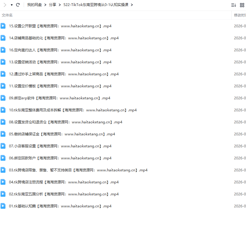 TikTok东南亚跨境从0-1认知实操课资源简介: