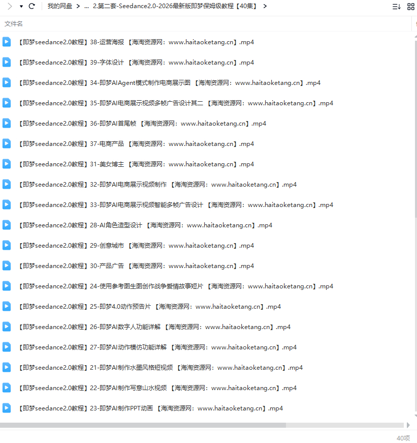 新版即梦Seedance2.0:5套教程合集,40+案例、全套提示词、素材包,轻松做出高质量AI短视频资源简介: