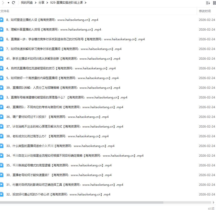 本课程是面向进阶型从业者的直播带货系统化实操课,全面覆盖从底层逻辑到团队管理的41个核心模块。课程深入解析直播间推流逻辑、账号精准建模、破层级技巧,系统教学人货场搭建、竞品拆解、主播人设塑造、高转化话术设计(拉新/憋单/点对点成交)。独创AI工具高效复盘法,并完整涵盖新号三天起号、老号重启、短视频引流、千川付费投放策略(自定义计划/起号模式/素材投放)以及团队分工考核机制。课程帮助学员建立从流量获取到转化复盘的完整能力体系,在2025年AI赋能直播的竞争中保持领先。
