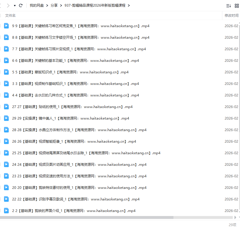 本课程《剪辑精品课程-2026年新版》是一套由官方认证讲师授课、面向零基础学员的剪映软件从入门到精通的超全体系课程。课程结构清晰,分为基础理论课(涵盖界面、蒙版、关键帧、调色、音频等核心功能点解析)与海量实操案例课(超100个具体特效教程,如3D相册、人物穿越、电影感开场等) 两大部分,并专门设有 “模板创作与变现”模块,指导学员如何成为模板创作人并实现收益。课程旨在通过原理讲解与海量案例实操结合,使学员不仅精通软件操作,更能独立创作复杂特效视频并探索剪辑技能的变现路径。