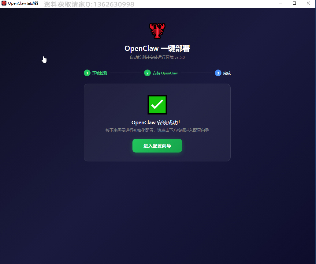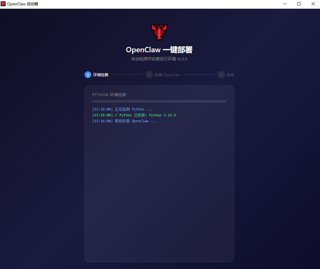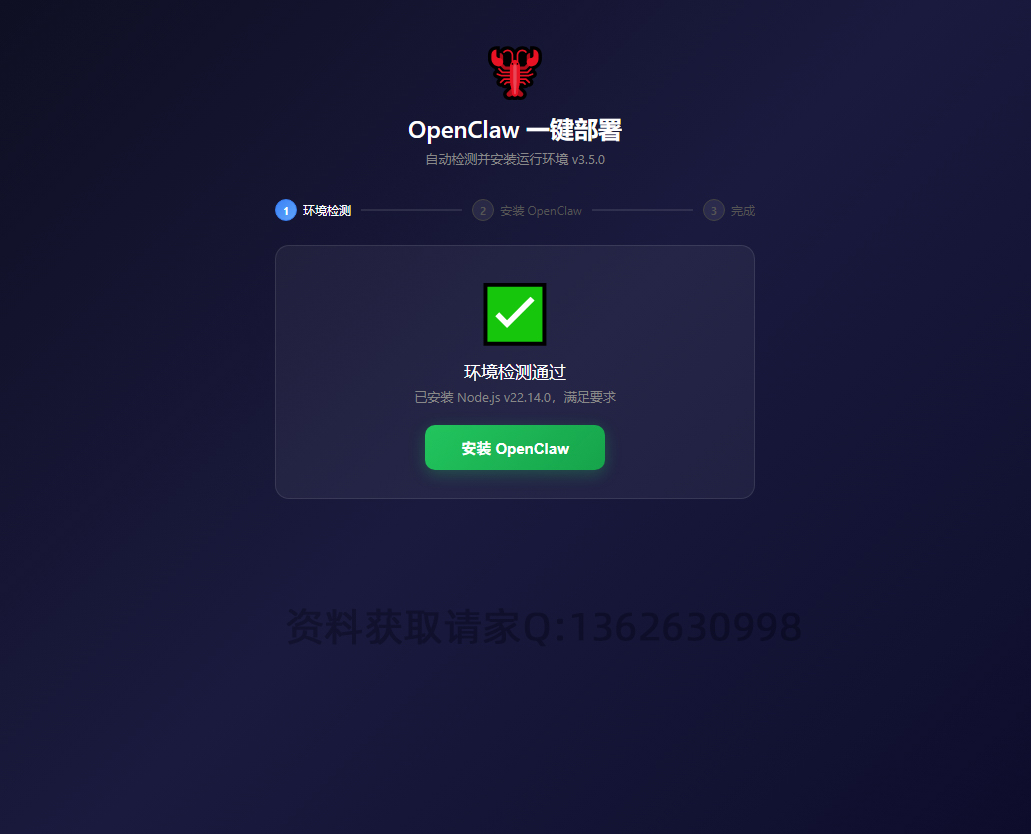 等环境检测完,然后点安装 Open claw