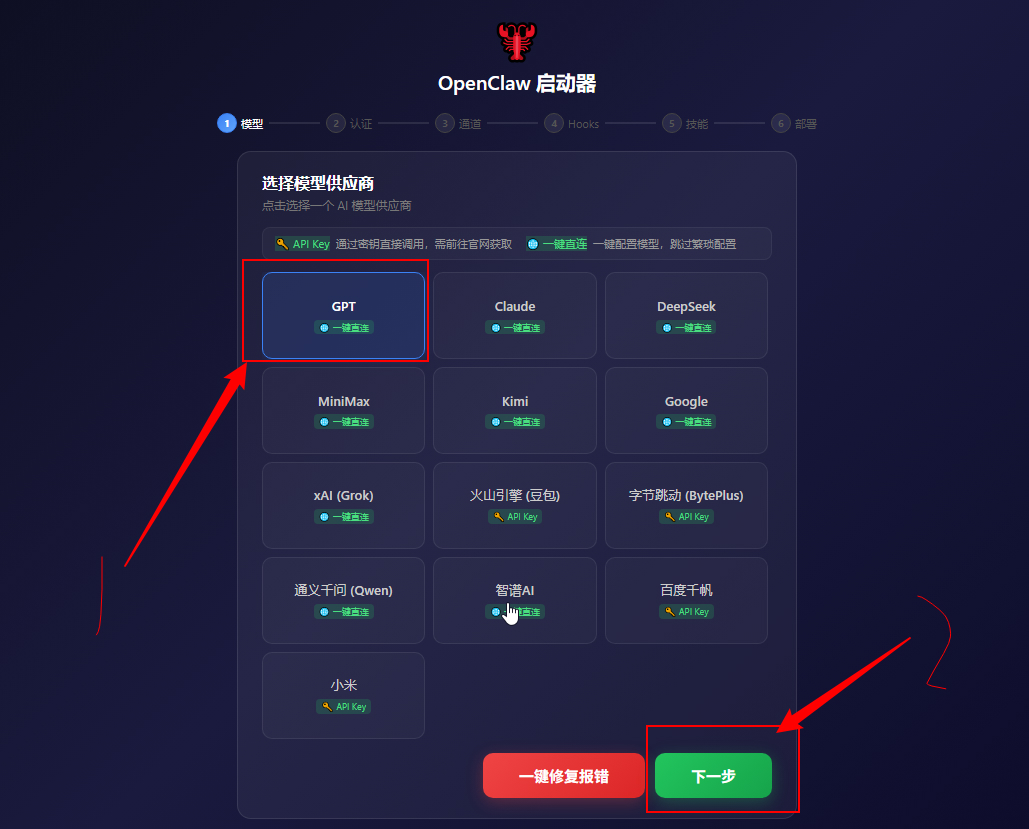 选择GPT (或者是随便选一个) 然后下一步 这个都是后面可以配置的