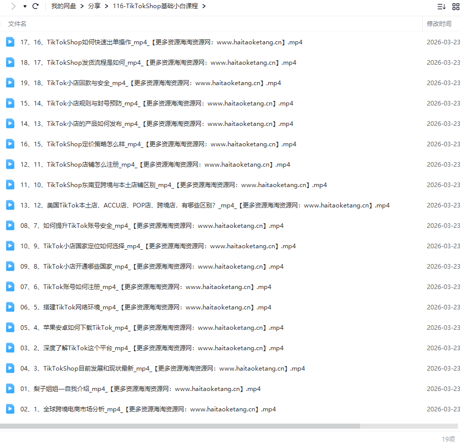 梨子姐姐TikTokShop基础小白课程 TikTok新手都要懂的课程资源简介: