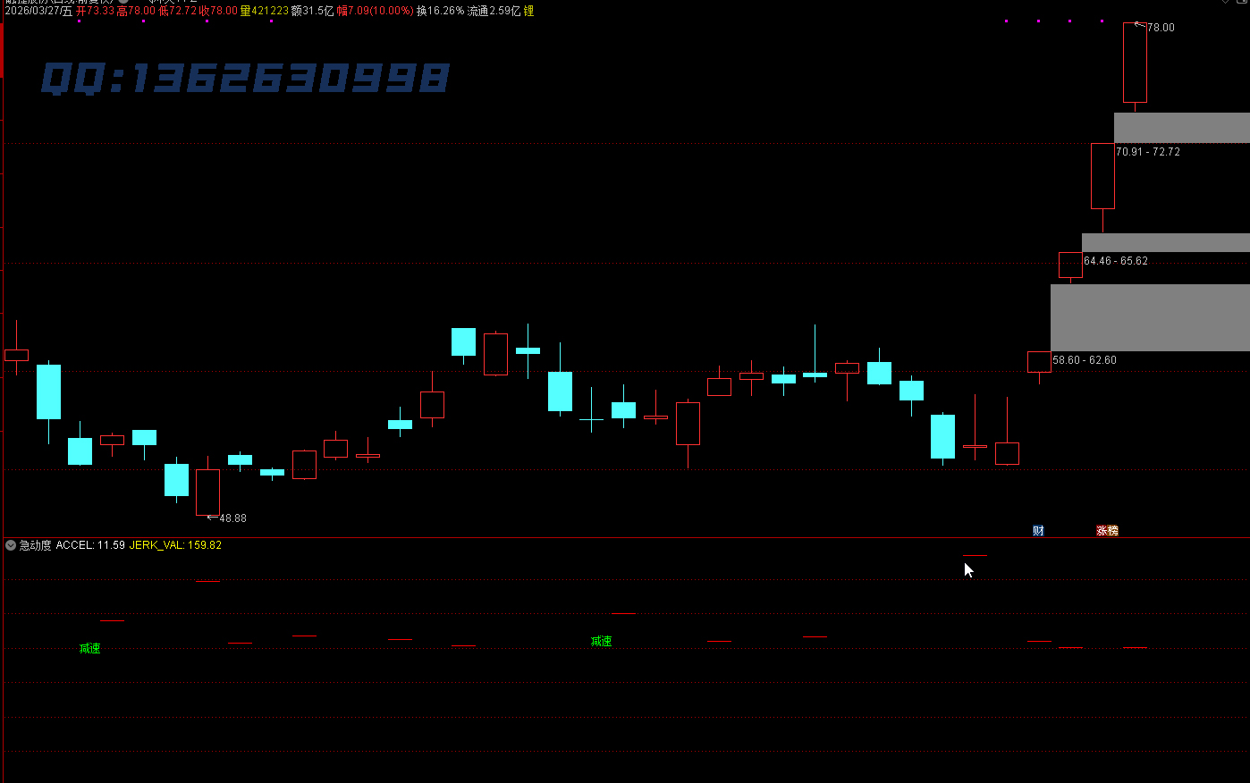 主力操盘不是 “一下子涨 / 跌”,而是 “先慢慢加速,再减速,最后反转”—— 急动度能捕捉到这个 “动力变化” 的过程,让你看懂主力是在 “真拉升” 还是 “诱多”,这是普通指标做不到的。