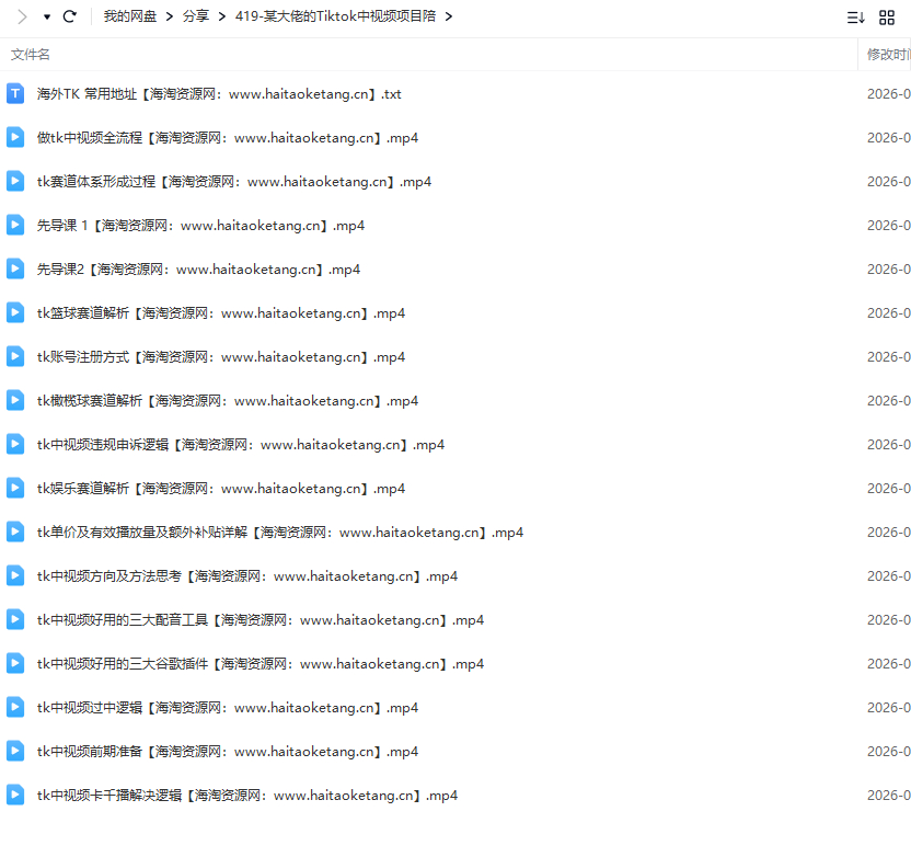 某大佬的Tiktok中视频项目陪跑,涵盖TK各个赛道玩法教学,从0到1出海賺美金资源简介: