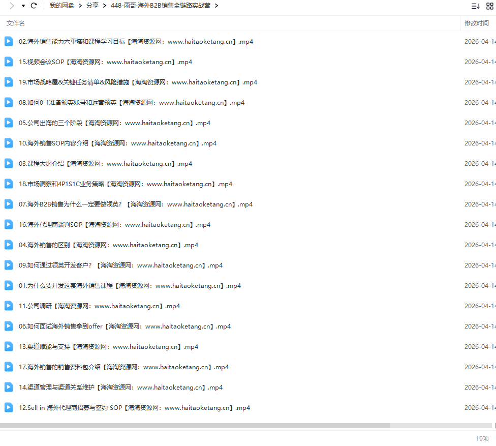 海外B2B销售全链路实战营,快速掌握海外拓客、渠道管理与成单技巧资源简介: